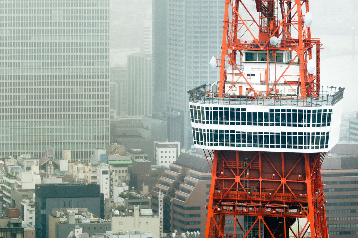 A tight crop of Tokyo Tower amongst the Tokyo skyline, Japan. Taken with a Hasselblad X2D.
